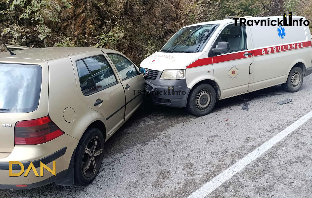 Danas, oko 11 sati, na regionalnom putu R-413 (Turbe-Gostilj) desila se saobraćajna nezgoda u kojoj su učestvovali putničko motorno vozilo Volkswagen Golf IV i sanitetsko vozilo Volkswagen Transporter.